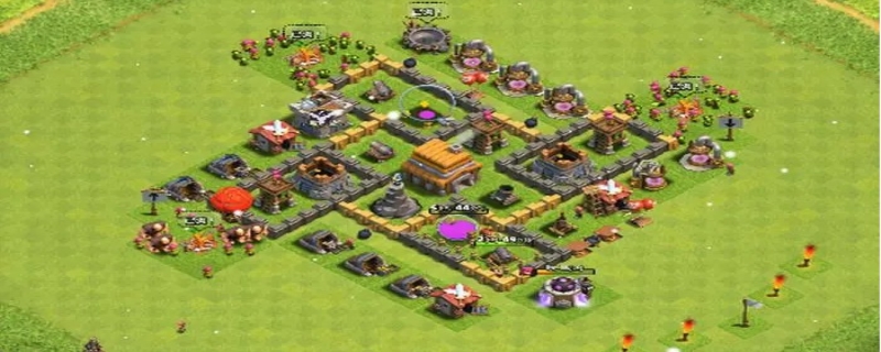主要防范流派:天胖流,阵型特点及设计思想:此阵把上下左右放满了一些建筑,增大了敌方放兵的距离,且防御建筑,放在了四个角落的中间,如果敌方进攻左边的防御建筑的话,其他防御建筑都可支援到,如果用的是巨人的话,摧毁了一个防御建筑后,他还得绕路进攻其他防御建筑,等到走到跟前,基本上就没血了或已经挂掉了。推荐援兵:少量弓箭手(用作引兵),剩余全是胖子,部族援军要求天使。注意事项:四本玩家前期的防御设施不多。火力还有欠缺,可以通过城堡援兵防守资源。