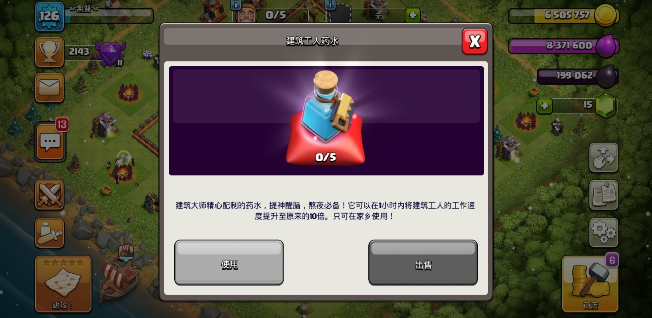 部落冲突中的建筑工人药水能够两瓶三瓶一起用,时间叠加,可是速率不变。部落冲突中的建筑工人药水的作用为:1小时内建筑速度提升10倍,对所有工人起作用。当两瓶三瓶一起用的时候,系统默认为时间的延续。比如:使用2瓶建筑工人药水后,2个小时内建筑速度提升10倍,3瓶也就是3个小时内建筑速度提升10倍。不会出现叠加效果为1个小时内建筑速度提升20倍。