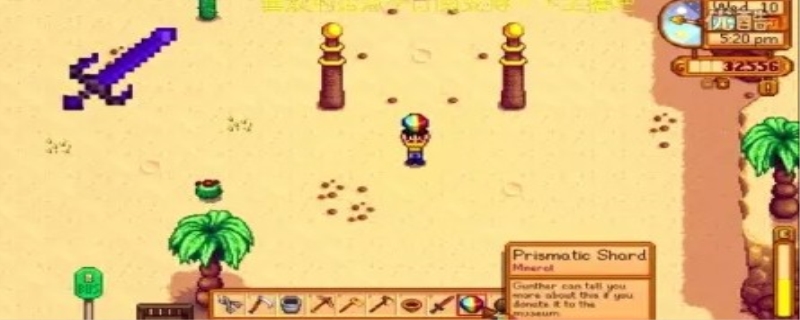 银河之剑(GalaxySword)是游戏星露谷物语其中一种武器。游戏玩家把一个五彩碎片送到沙漠的三根石柱处,手握着碎片进入到石柱中心的地格就可以得到(碎片会消耗掉)。