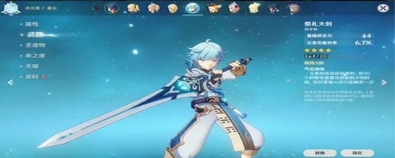 在原神中西风大剑装备的属性是双手剑,那样较为适合迪卢克来使用。大家可以根据祈福得到西风大剑。玩家通过达到目标以后会获得西风大剑,来对迪卢克开展装备。