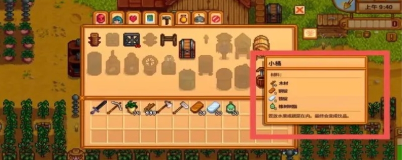 4、铜条和铁条可以通过冶炼矿石获得的,酒桶做完之后放到庄稼周围。5、把啤酒花放入酒桶,1次只可以放1个。6、当酒桶上边会出现淡啤酒图标时酿造成功完成,点一下获得淡啤酒。